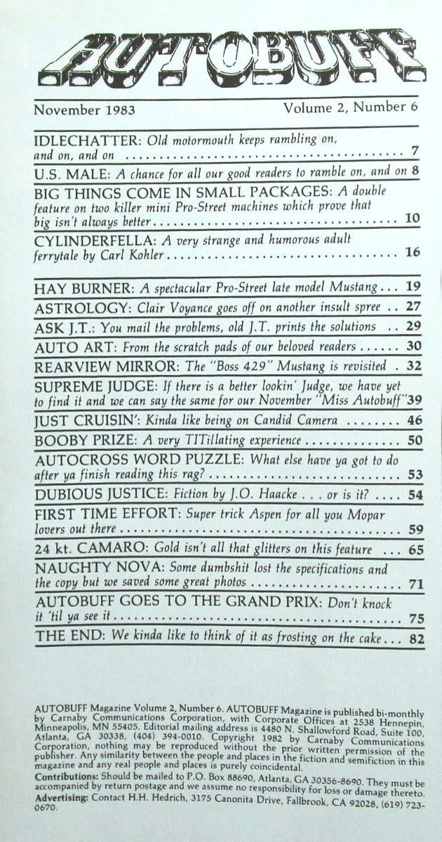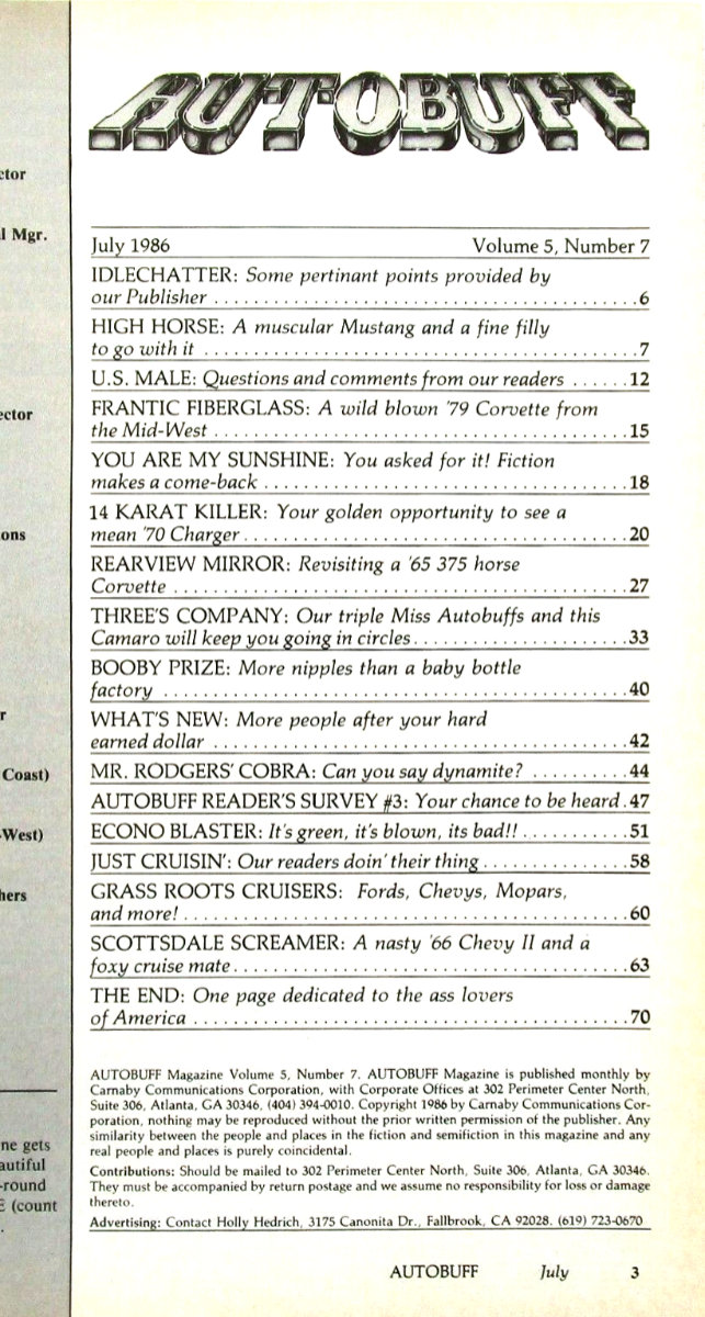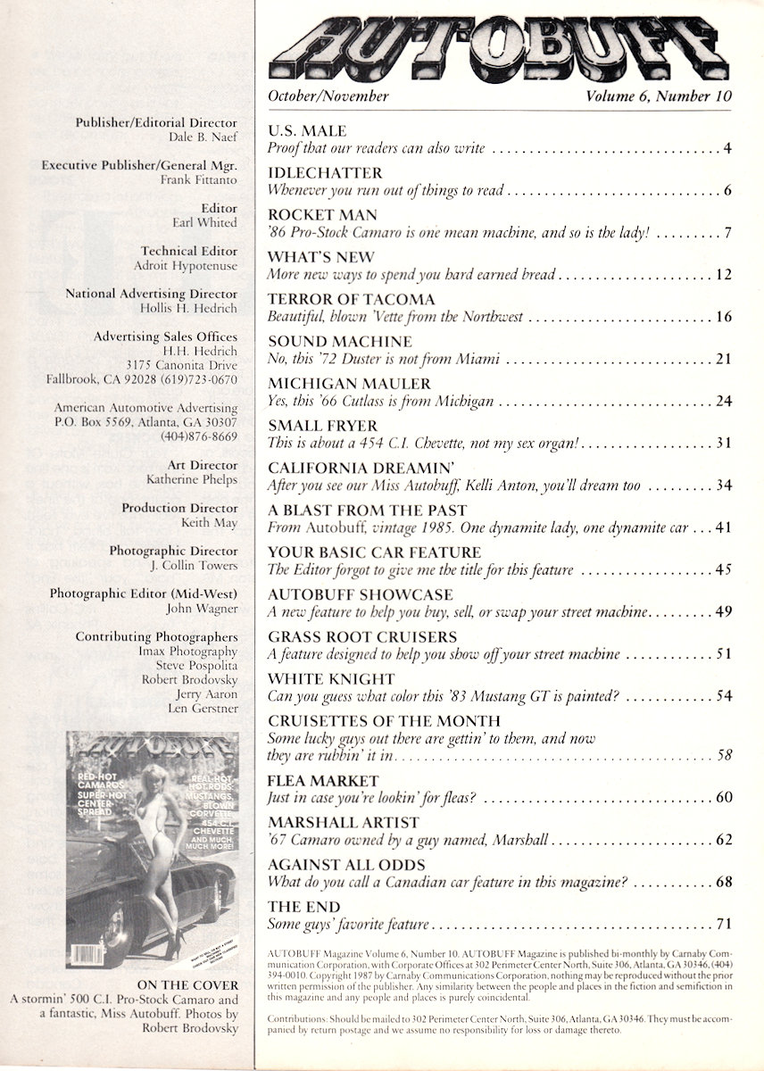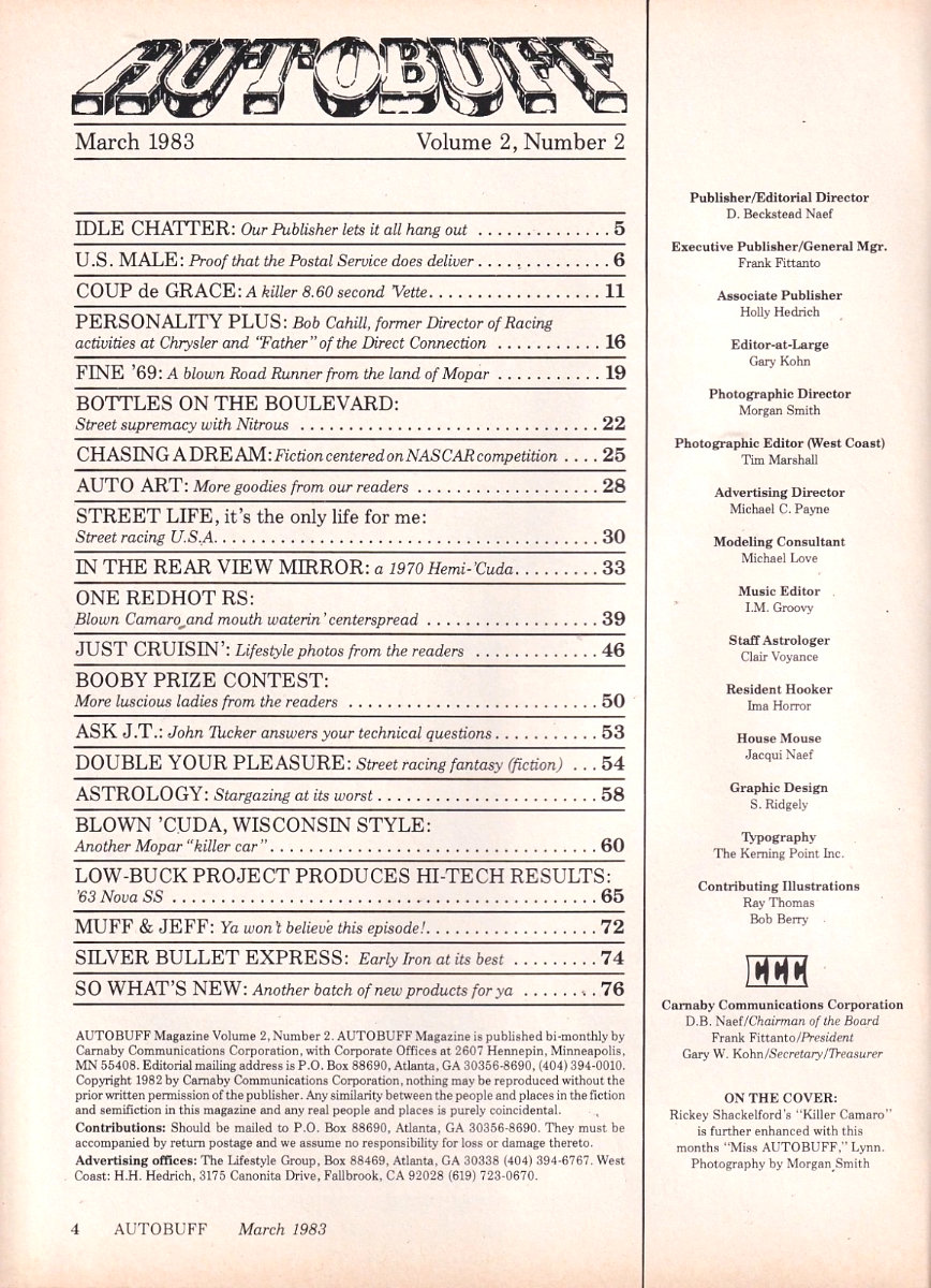 attempted a unique magazine with muscle cars and street machines coupled with adult humor, bikini-clad or topless women, auto-related fiction,
