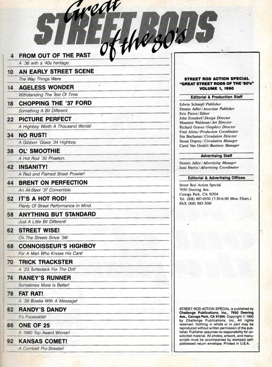 Besides Fat Fendered Street Rods and Rod Action Yearbook, Challenge produced a number of one-shot specials between 1975 and 1995. We suspect our collection is far from complete, as other issues have not yet surfaced.