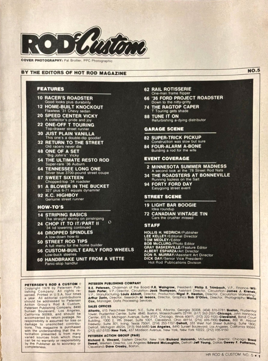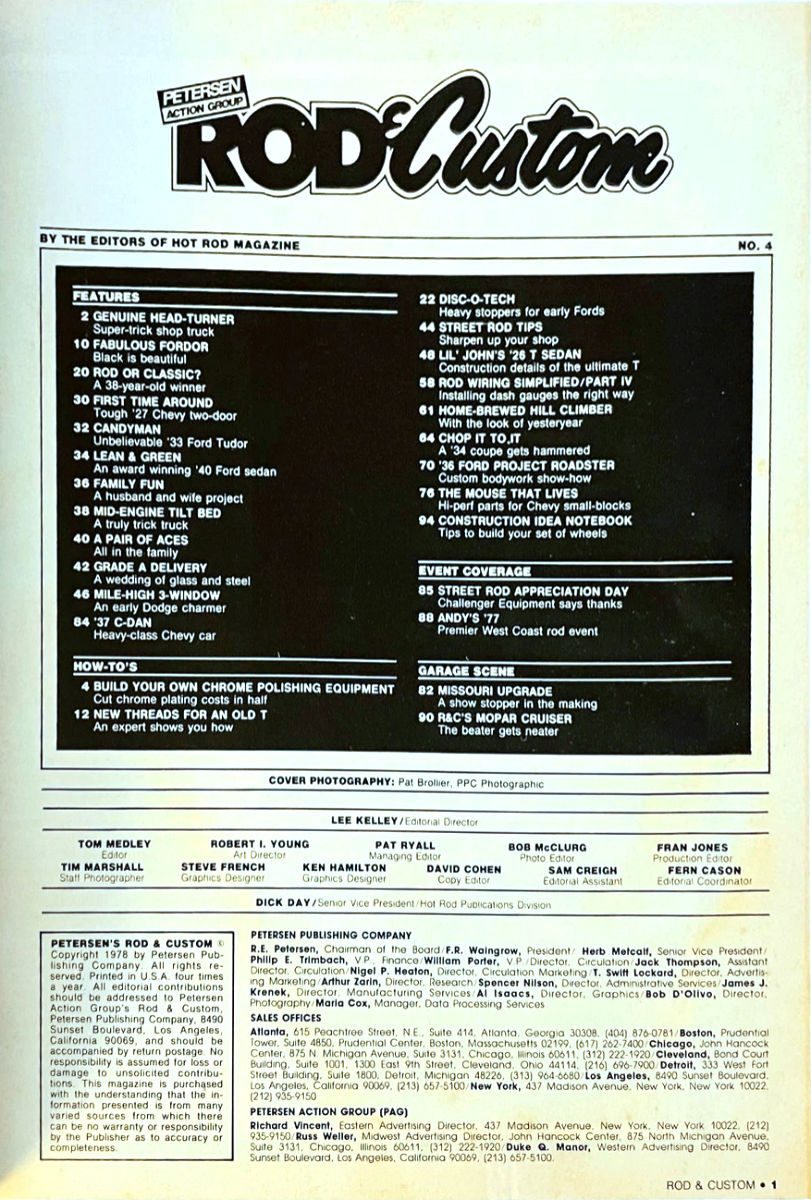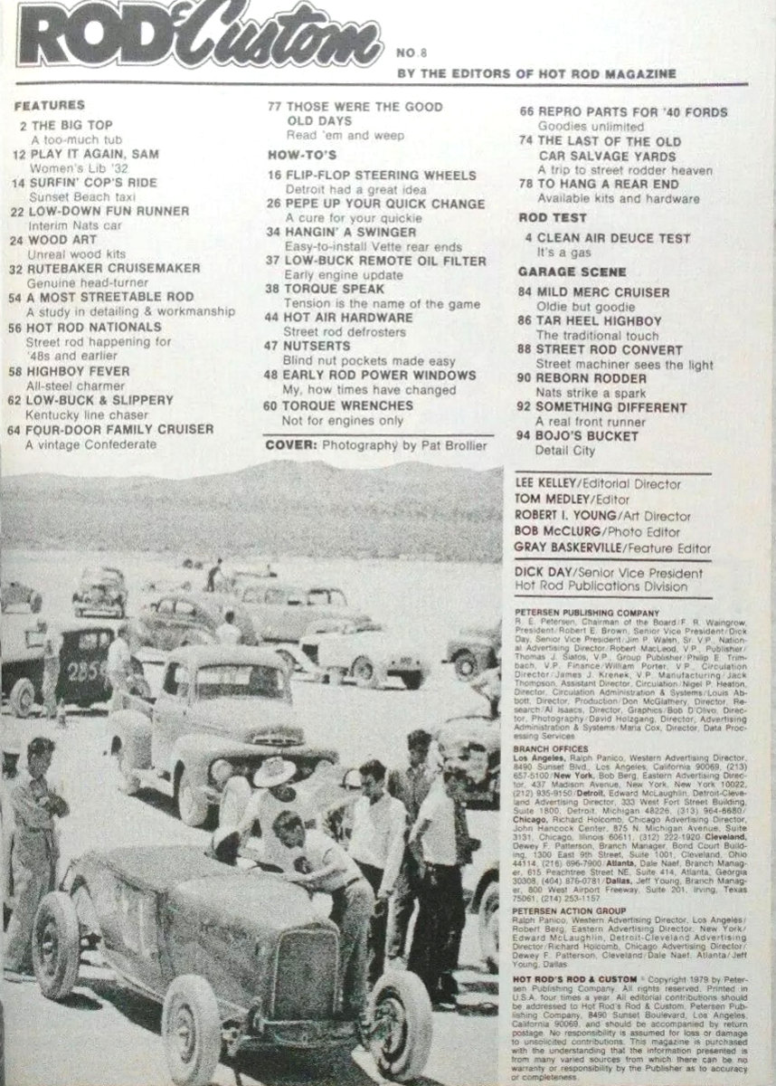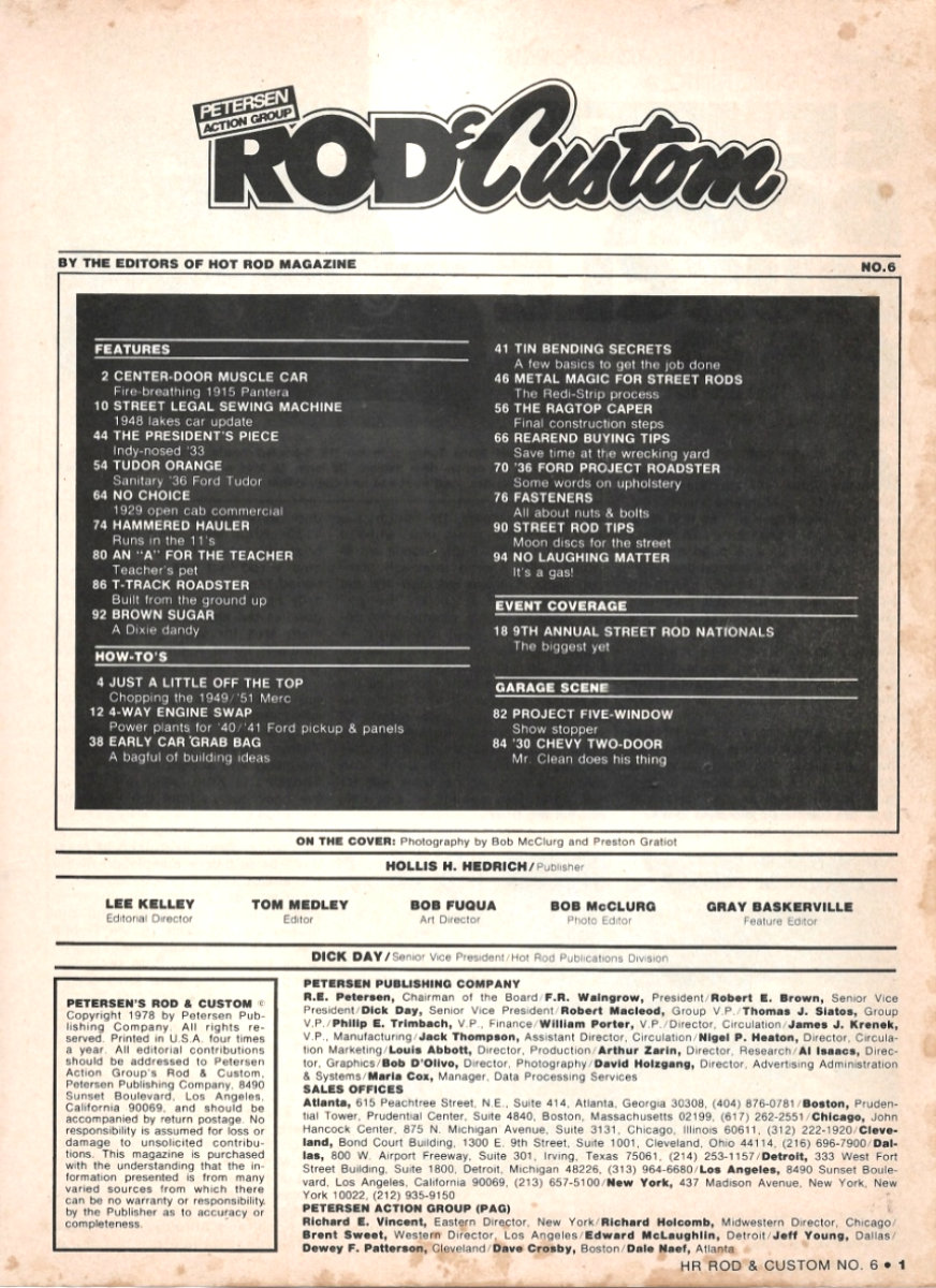feature articles, project vehicles, how-to's and coverage of national street rod events. Numerous editors and staff kept the dream