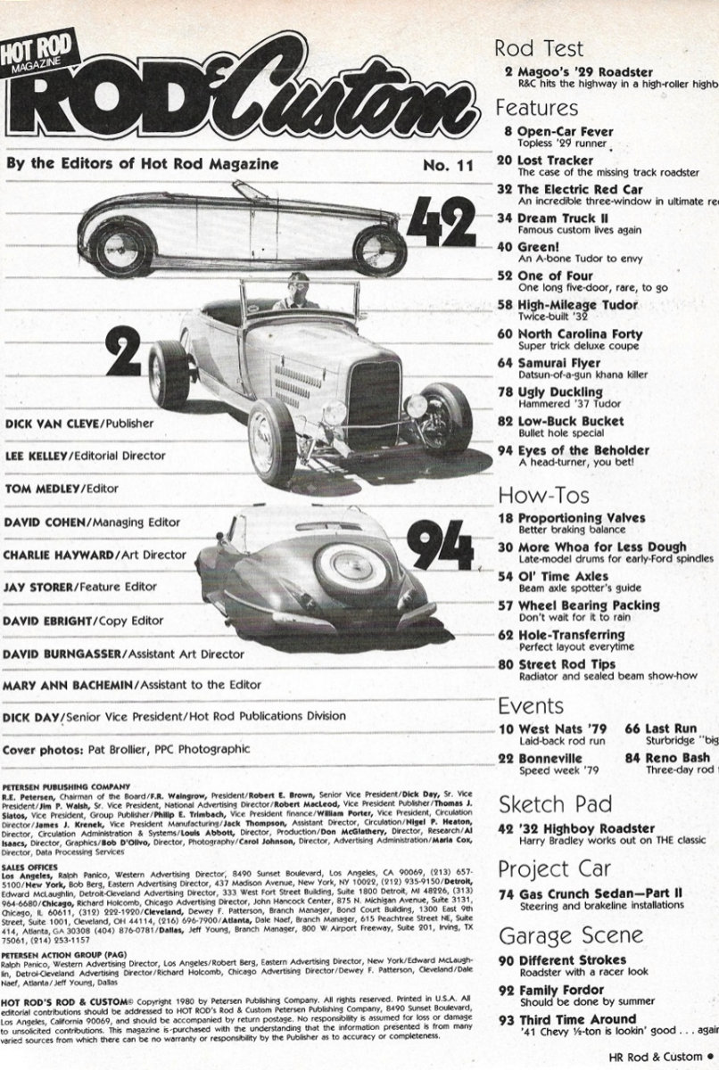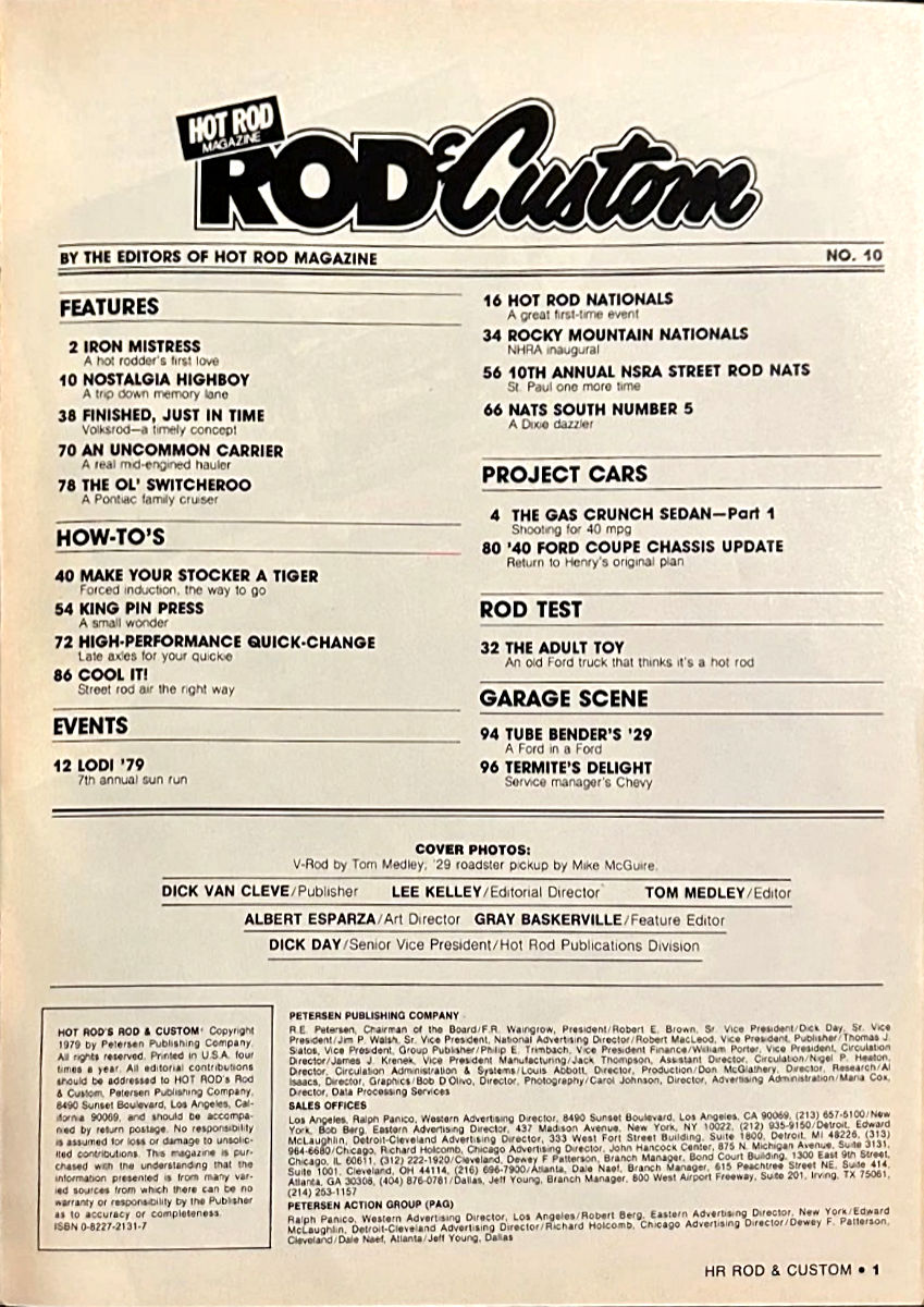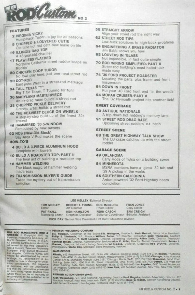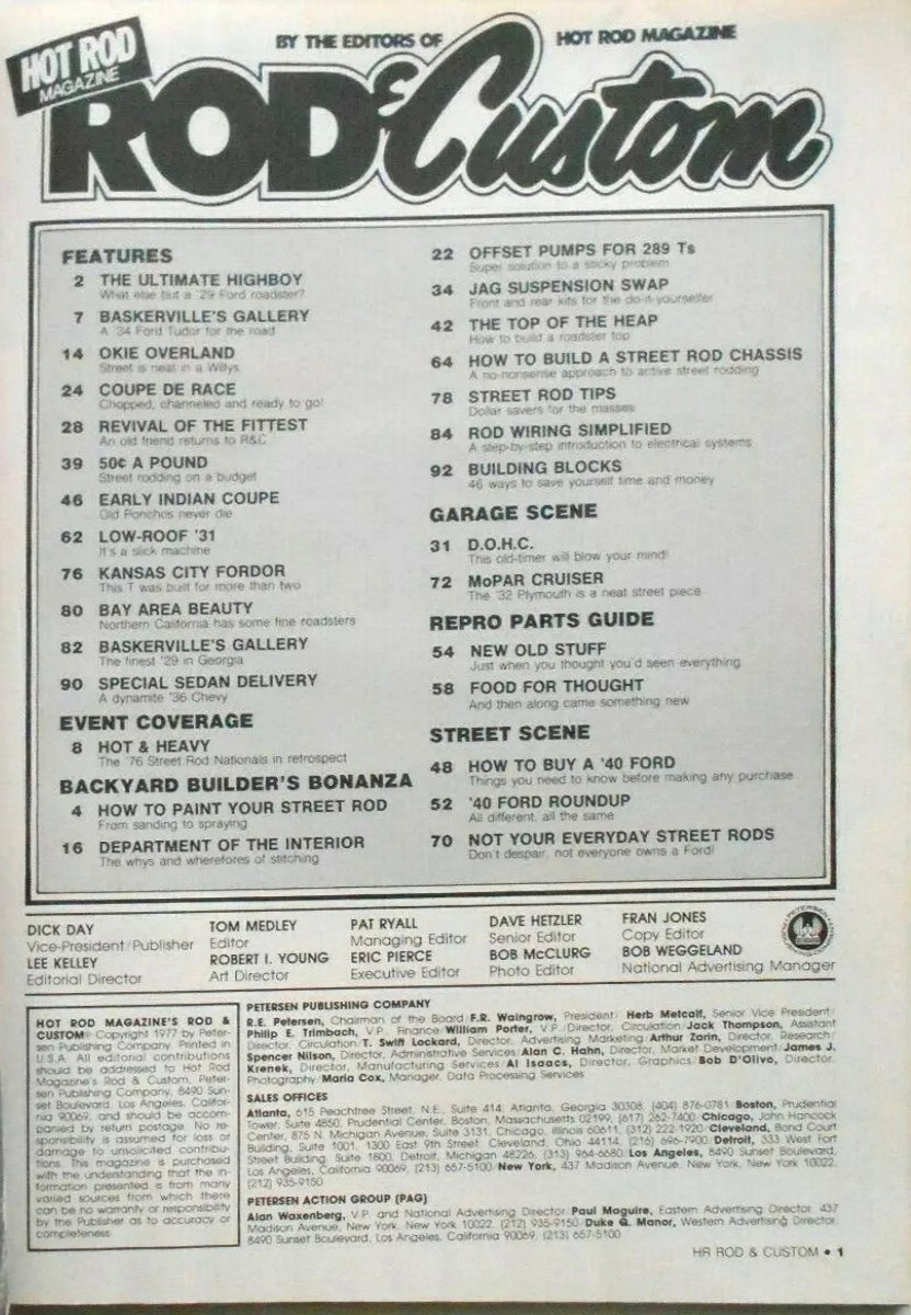 feature articles, project vehicles, how-to's and coverage of national street rod events. Numerous editors and staff kept the dream