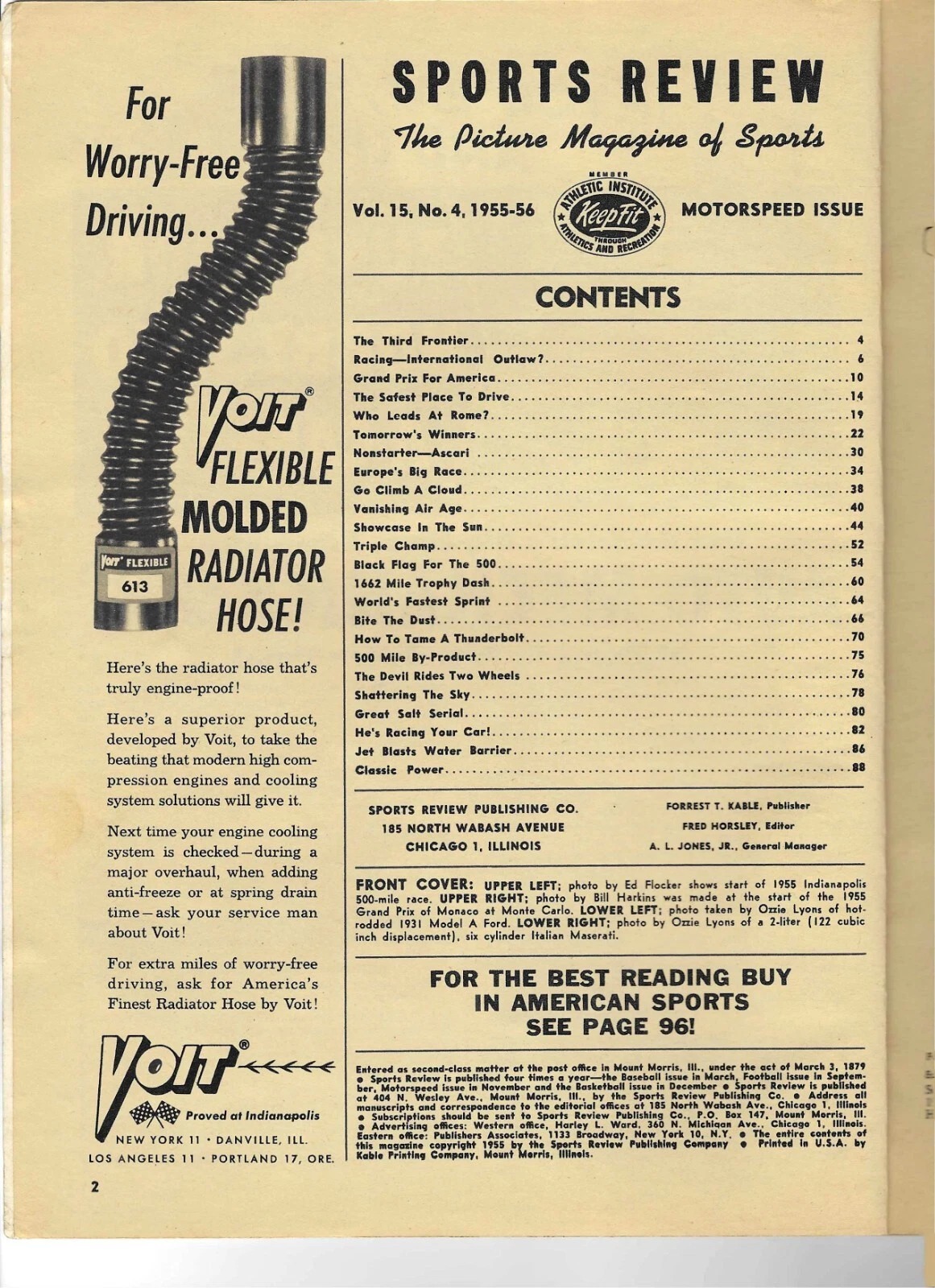 The title was a motorsport-oriented magazine published annually. The first editor was Fred Horsley, but after two issues he was replaced by Don O'Reilly. Mr O'Reilly was an early editor of Speed Age and Car Life magazines.