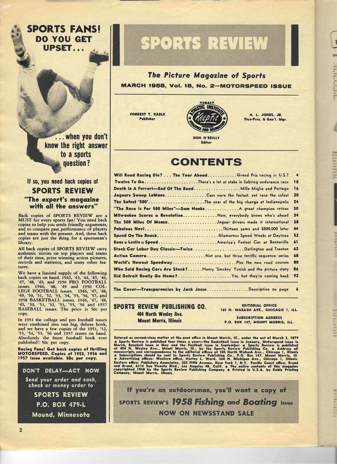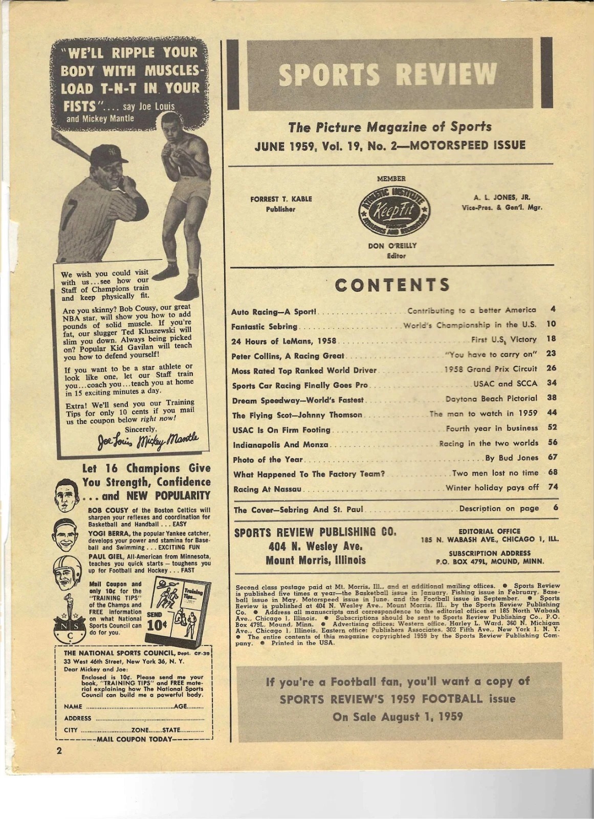 This title was managed by the broader Sports Review organization with various topical issues published either four or six times per year with content focused on baseball, football, basketball, motorsports and later wrestling. The larger organization was headquartered in New York City.