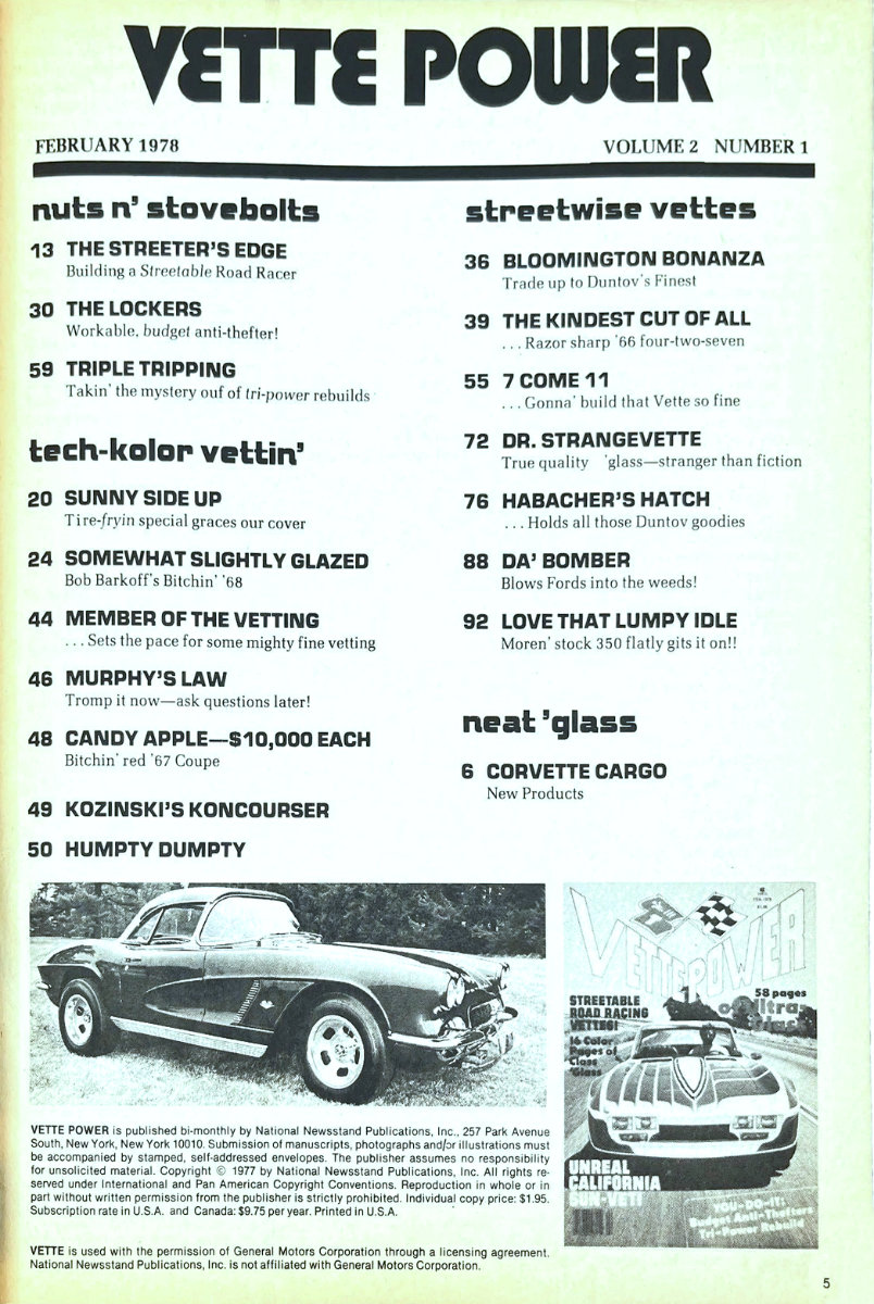 Mr. Fass worked with Stanley R. Harris to jointly publish Vette Power under Harris' Modern Day Periodicals Inc. organization. This is likely how Mr. Harris learned about the automotive publishing realm. Harris went on to create Mopar Action.